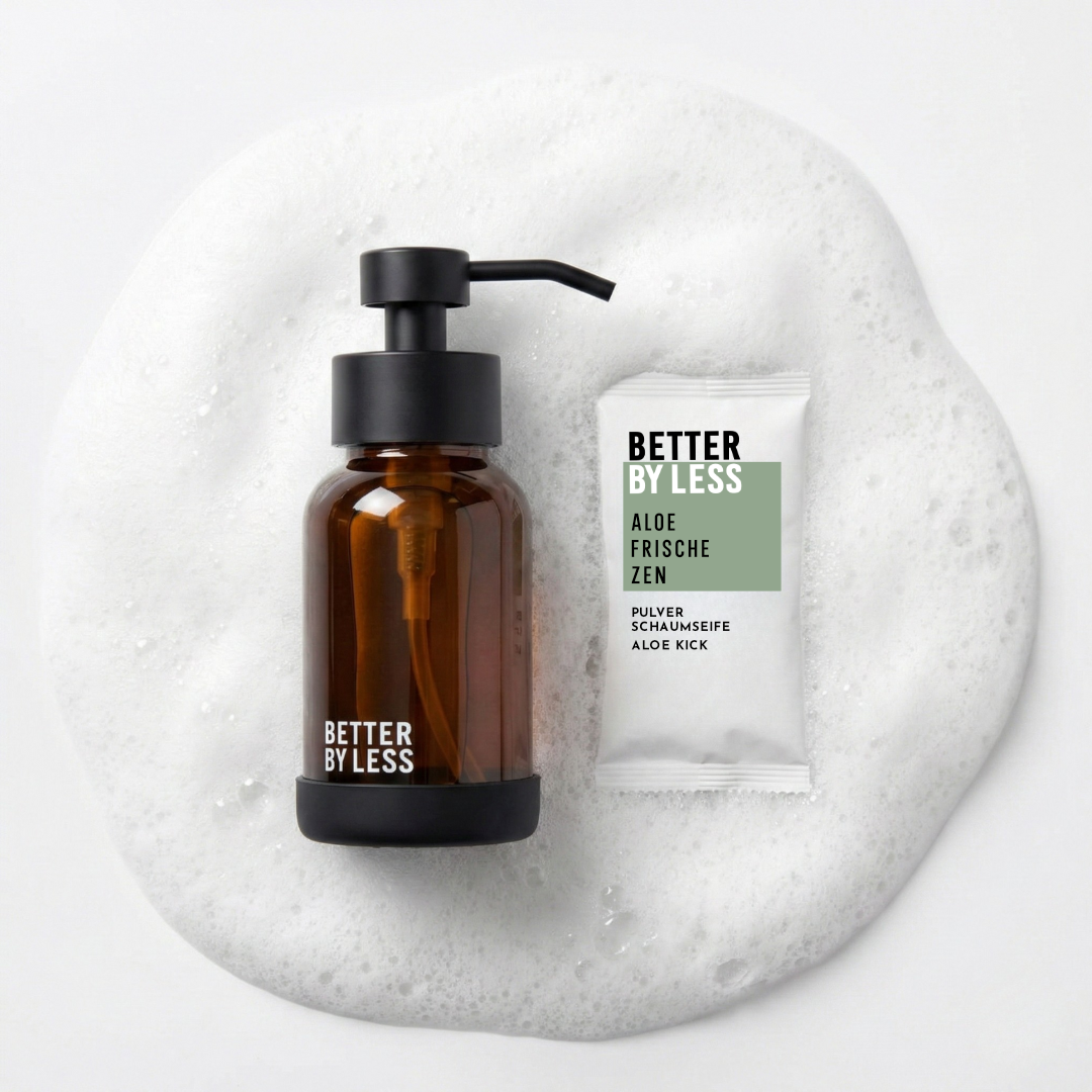Better by Less ist ein durchdachtes Pflegekonzept für Concept Stores und Retailer mit Anspruch an Design, Nachhaltigkeit und Funktion. Kein klassisches Kosmetikprodukt, sondern ein Eco-System, das sichtbar anders ist – und genau dadurch Aufmerksamkeit erzeugt. Unsere Pulver sind perfekt auf unsere Schaumspender abgestimmt und kreieren ein in sich geschlossenes System. Dies sorgt ganz natürlich für kontinuierliche Nachkäufe der Refills.
